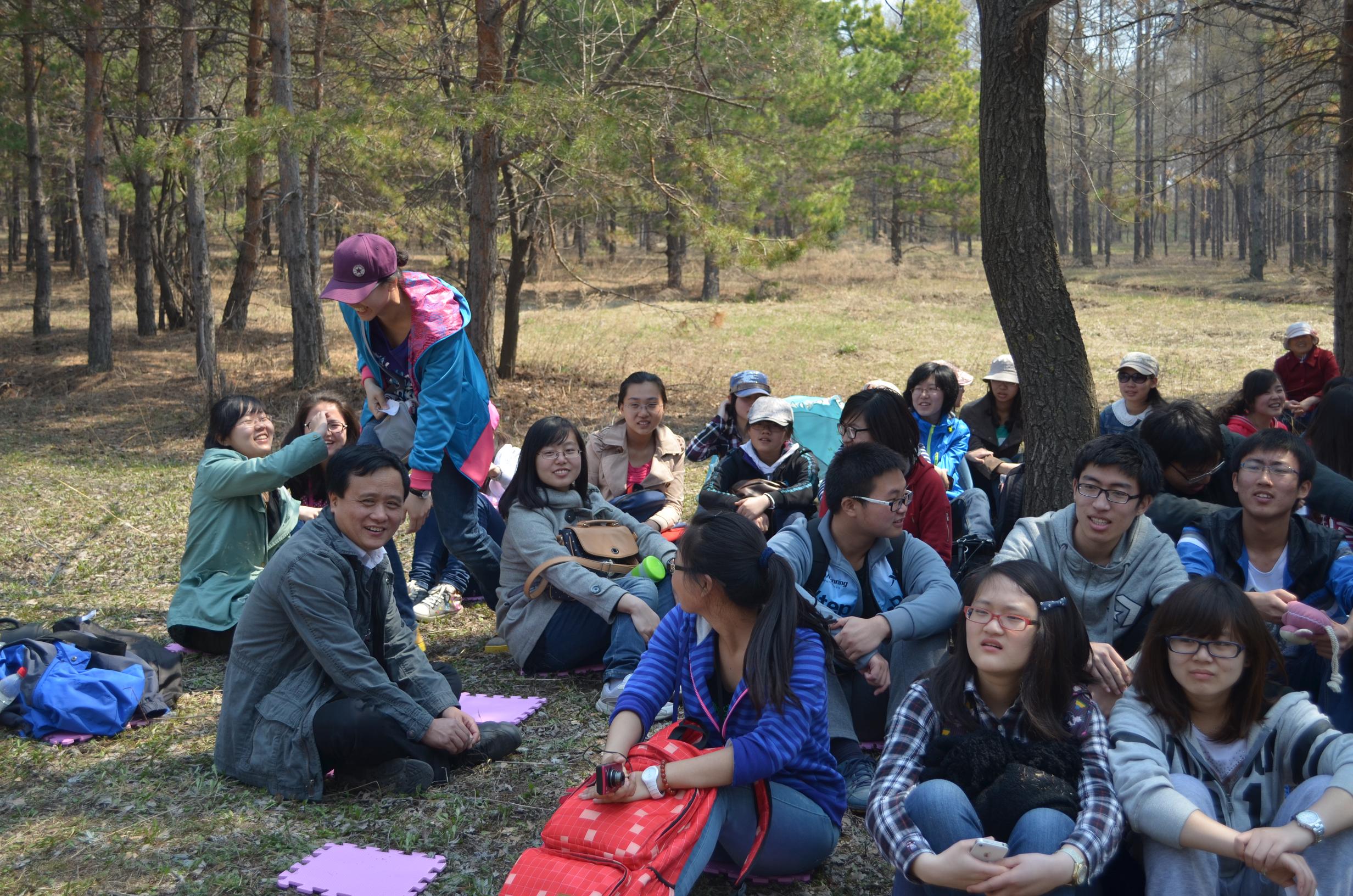 时值暮春,天朗气清,惠风和畅。到达风景区后,老师和同学们在林间空地席地而坐,开怀畅谈,气氛融洽。随后进行了“探宝”游戏及表演节目等活动,同学们全身心投入,个个笑逐颜开。午餐时分大家尽情地品尝了原汁原味的东北农家菜。